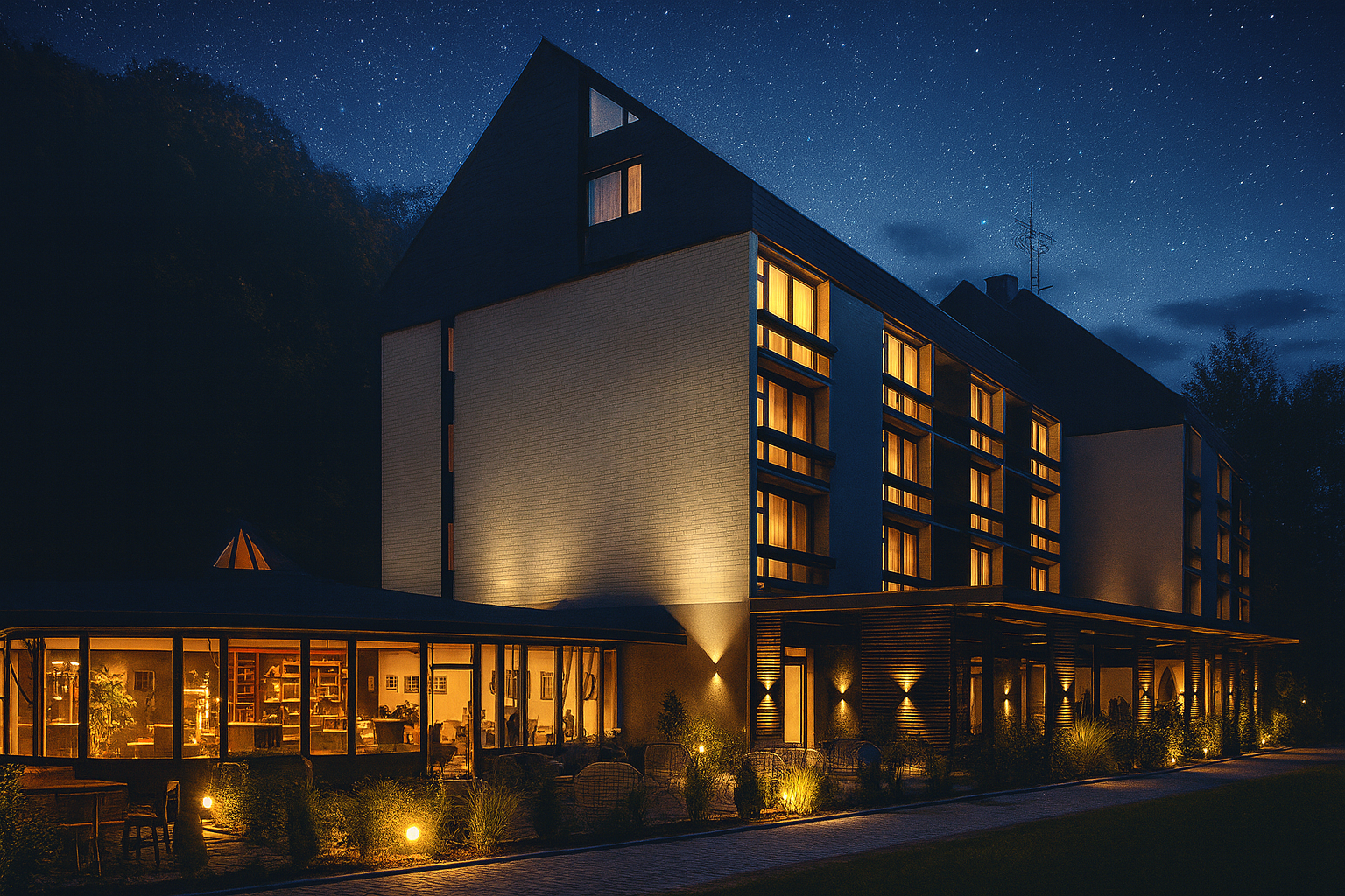 Mit 58 modernen, neu-renovierten Zimmern und dem Blick auf dichte Wälder ist es der perfekte Ort für alle, die Natur, Wellness und gemütliche Atmosphäre lieben.